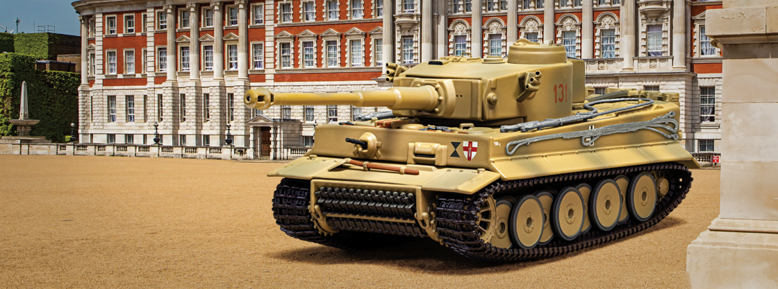 Building on the previous model, the Panzerkampfwagen VI Tiger Ausf E is a highly detailed model presented in impressive liveries. This model is based on the Panzerkampfwagen VI Tiger Ausf E which is displayed on Horse Guards Parade in London.