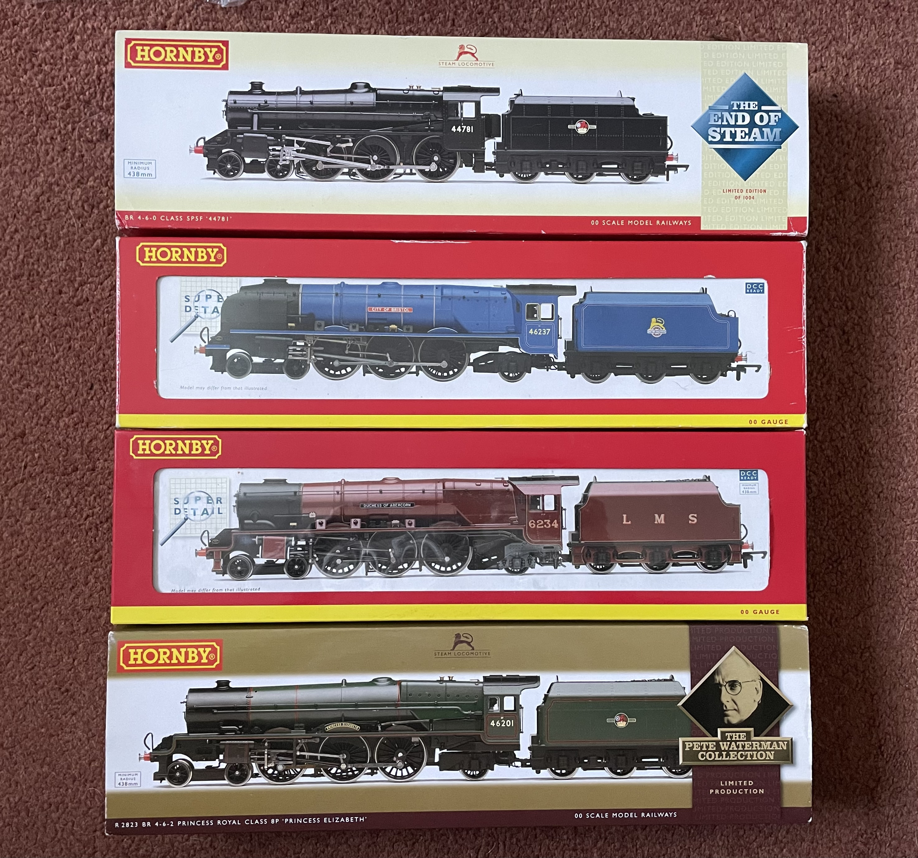 I had planned to limit my purchases this year to the Dublo Scotsman but couldn’t resist this bargain. Picked up an End of Steam Black 5 R2686A, Pete Waterman Princess Elizabeth, City of Bristol R2553 and Duchess of Abercorn R3119 all for £100! Bit of a bargain and all models are unused with good boxes. Are they rare models?