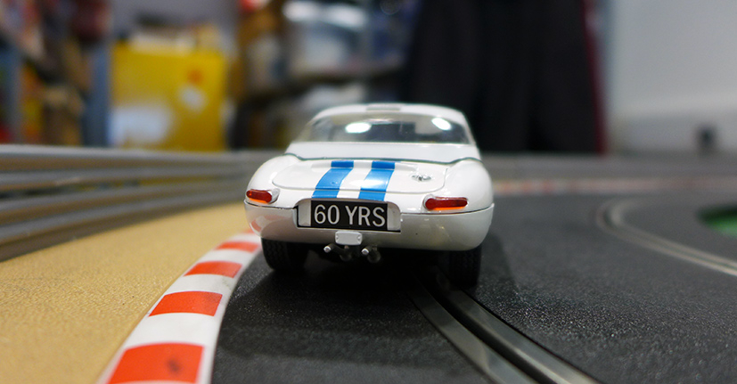 Unlike the Union Jack E-Type, the 60th Anniversary E-Type is the hardtop racing version of the E-Type, one that shone in the 1960s and beyond. First making its appearance with Scalextric in 1968 in 1:24 scale, the E-Type could be found in a set proudly proclaiming it a ‘Super Powered Model Racing Car’. The C34 Jaguar E-Type then appeared in 1971 and again in 1972.